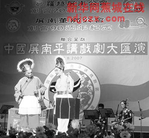 张贤读(左)等屏南平讲戏艺人在马来西亚演出(资料图)