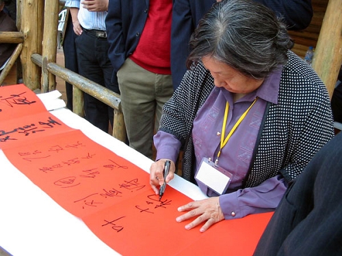图2:叶飞将军之女叶小楠在白水洋考察时签名。(张川闽 摄)