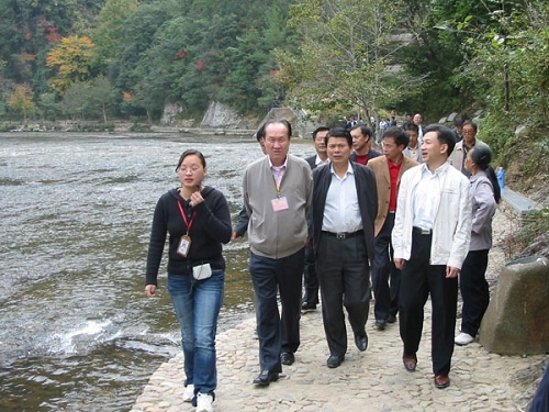 图1:去年11月,新四军后代20多人在宁德市领导林鸿坚、县长吴毅荣等陪同下来到叶飞将军等革命先辈曾经战斗生活过的白水洋考察。(张川闽
