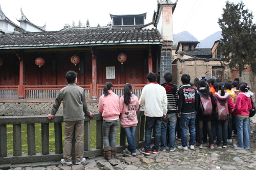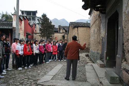 图5:屏南二中学生参观当年新四军六团团部驻地址——双溪陆氏祠堂。
