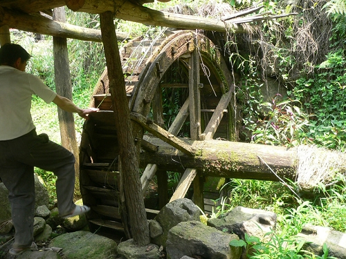 "最后一次造纸是在三年前。”村民主任郑学吉说,口气中有些怀恋和无奈,“以前全村人农闲时间都在造纸。造纸时节,水车都在不停地转。现在不造了,近一半的劳动力打工去了。”他的家人好不容易从杂物堆中翻出了仅有的两件造纸工具——簾和棕刷,上面粘满了灰尘和蜘蛛网。村中央小溪的两边散落着许多小瓦房,那就是手工造纸的作坊,它的数量几乎与村里住房一样多,足以见证