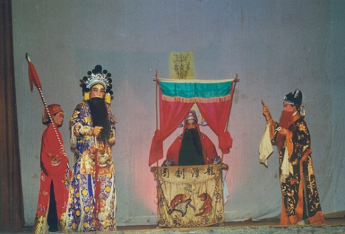 这个晚上演的是《刘沈香破洞》,戏演完了,不知道讲的是什么。但有几幕戏和几句台词唱段至今记忆犹新。那就是巩怖的妖魔鬼怪红脸、黑脸张牙舞瓜的模样,还有就是那前台清唱、后台帮腔,动听的几句唱腔:“铜门铁门都打破,只乘下纸门打不开……”