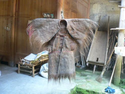 很久以来,蓑衣是各家必备雨具,连王公贵族豪门中亦少不得此物。《红楼梦》第四十五回“金兰契互剖金兰语风雨夕闷制风雨词”中写道:“只见宝玉头上带着大箬笠,身上披着蓑衣。黛玉不觉笑了:‘那里来的渔翁!’”江南多雨,蓑衣更是不可少。只是后来,随着其它更美观的雨具的出现,它从家家必备之物,退到农家独有,成为南方农民劳作时的专用的雨具。记得小时候,农村家家都有好几件棕衣,一般是家里有几个劳力就至少有几件棕衣。先前夏天时,生活困难的人家还用几片棕片缝制短裤。
