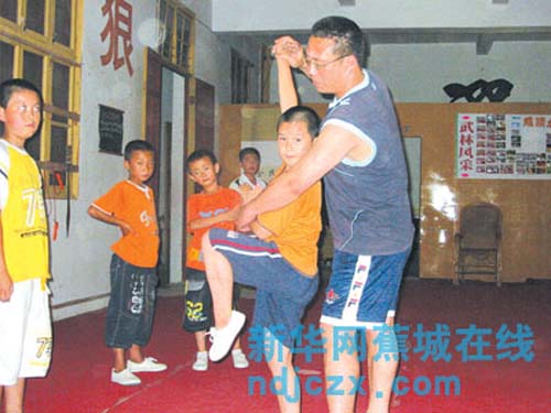 武术教练在精心指导孩子