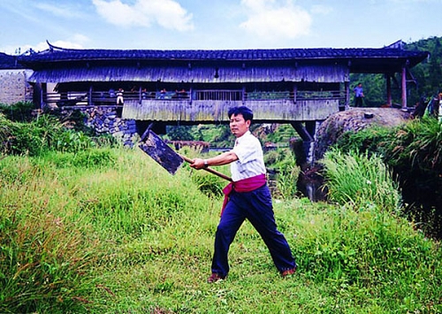 锄头功和凳子功系系际甘氏祖传,锄头和凳子都是农村的劳动工具和生活用具,随手拾来既为兵器,是用于抗暴健身的奇门兵刃之一。