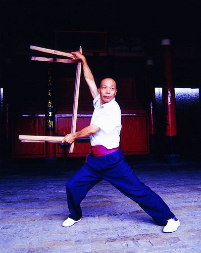 往里村张氏,祖传锏术,是一种短兵器,其技法讲究一手防、一手攻,攻防兼备,适宜于近身靠休。