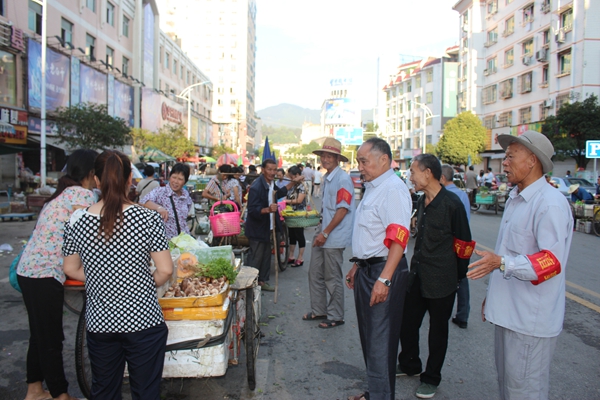 今日屏南消息(张尚瑶 张川闽)“你好,这里不能停车,请把车开走!”“你好,请把摊位往里面移一点,挡住路了!”7月30日凌晨5点半,屏南县中心农贸易市场边的宽阔道路上,在几个佩带红色值勤袖章的老人和颜悦色劝导下,违章停放的车开走了,随意摆放的摊点归位了,乱七八遭的道路整顿干净了,天空好像也亮丽了起来。 “夏天,慕名来白水洋、鸳鸯溪国家5A级景区旅游的游客越来越多了。那次,我无意听到一名游客说,‘屏南风景这么好,城建也不错,这段路早上却没有人管,乱停车,乱摆摊,把车都堵住了,真闹心。’”在现场劝导的75岁的老党员张久全动情地说:“我听到后,感觉脸上火辣辣的,这简直就是打屏南人的脸!”于是,他把组建老年人义务劝导队的事,跟古峰镇长汾社区老人协会会长、68岁的陆泽勤说了,俩人一拍即合。他们就邀请了65岁的张世兴、林虎瑶一起,组成老年人义务劝导队,并获得古峰镇、长汾社区和有关部门支持。 说干就干。从今年6月1日起,每天凌晨5点半至8点上班之前这段时间里,在屏南县城的中心农贸市场,老年人义务劝导队就成了一道道亮丽的风景。 “过去这里真乱,大家抢着摊位,争着把摊位往前移,都移到大路中间了。现在可好了,大家都把摊位往后移,腾出两个车道,而且不用争摊位了,人也更安全了。”在一旁摆摊卖菜的高女士说。 正在巡视的巡特警周永权说:“凌晨,这一带一直是交通整治的难点、盲点,有了义务劝导队,交通就更安全了,我们也放心了。”负责市容监察的县城建监察大队陈守坚接过话茬:“中心市场很早就开始批发蔬菜,这是我们工作盲区。老年人义务劝导队,填补了我们工作盲区和盲点。而过去清理整顿道路很费尽,要好几个人花半小时多时间,现在只要10分钟就完成了。老年人义务劝导队,传播着正能量呢!” “我是共产党员,为人民服务,是我应尽的本份。”张久全动情说。 “我们会一直劝导到11月份旅游旺季结束!”陆泽勤说。 |