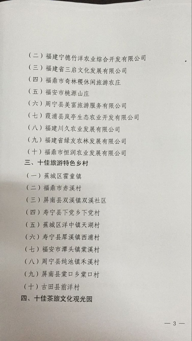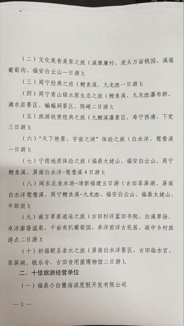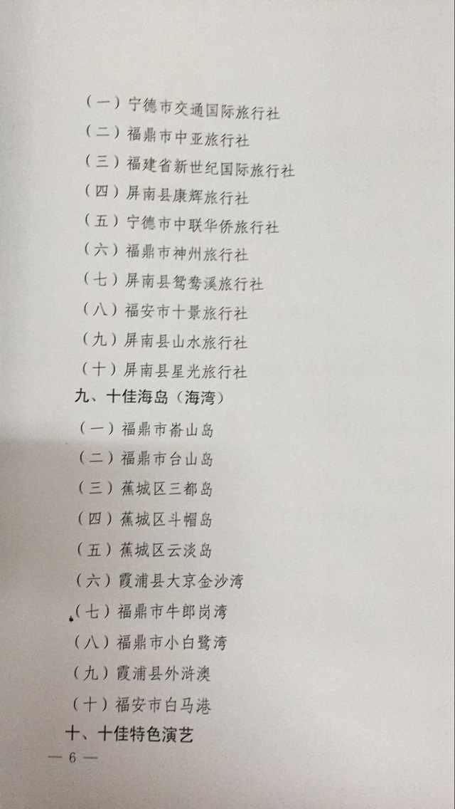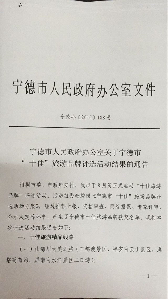 宁德市“十佳”旅游品牌评选活动结果