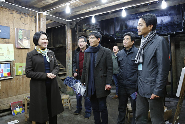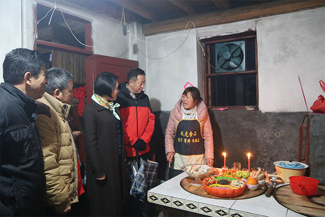 夜幕降临,华灯初上。徐姗娜又饶有兴趣地走进几户漈下村民家里,考察农民画室,现场观摩村民创作油画,鼓励他们用艺术改变生活。她还在一户村民家里,观看小年“祭灶”习俗活动,给村民们带去新春祝福。