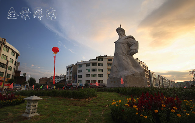 环岛中心,一位身高入云的巨人在那里临风沐雨,崴然屹立,仿佛以他那刚毅的表情,和锐利的目光,一一审视着过往行人。远远望去,但见他,官袍披身,顶戴花翎,手握佩刀威风凛凛,一股英气直逼人心,让人不由得不寒而栗。显然,这是一尊清代将军的塑像。那样子,多看几眼,时间仿佛又回到了两百多年前,将军突然现身在这里,以他的威严无声地警告域外来敌和那些鸡鸣狗盗之辈:这是我的家乡,尔等不可胡来。否则,别怪我不客气!