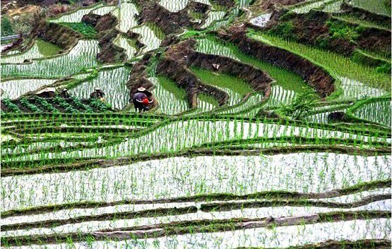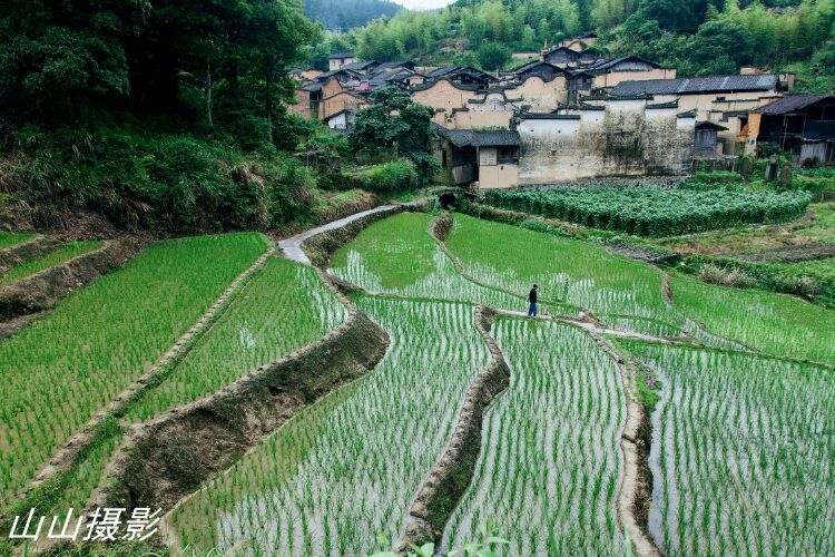 家住山区小县屏南,境内多山也多田。每一次走近村庄,都会被田野吸引。那些田野,是和我的夏天一起成长的。手把青秧插满田,低头便见水中天。芒种前后,农人们再也闲不住了。原本一根根粗壮的手指,此时却如绣花针一般,精细又娴熟地在田里插上了秧苗。远远地看,是嫩绿的一片,走近了瞧,稀稀疏疏,却又均匀有序地投影在闪闪发亮的水光里。田间的艺术,无处不在。窄窄的田埂,从高处俯视,像地图上纵横交错的铁路网,在有坡之处由下往上看,则是层层梯田接蓝天。 ![]()
