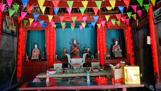 如今,国舅庙依然还在原地,就在路边,看起来不算太旧。未经细考,不知建于何年。神龛上并排供着三组神像,都是戏装打扮。中间一位一看便知是国舅爷。左右两边,看装扮,一边估计是皇帝和娘娘,另一边是国丈和夫人。自然,都只是泥身而已,系上世纪八十年代重塑的。之前的木雕神像早已被盗。最亮眼的,是正厅中那一张大供桌,由三张小桌拼成,一进门,便赫然在目。桌面蒙着白铁皮,不说是一尘不染吧,但也的确十分光洁。据说,这位国舅爷的生日是正月十二。每年的这个日子,白玉村的村民都会自觉备上供品,举村前来为国舅庆生祈福。可以想象,那场面何其热闹。