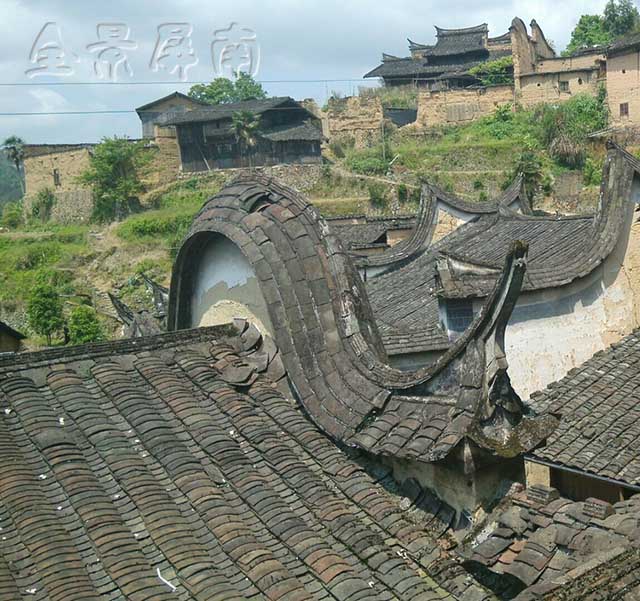 降龙村也是寿山的一个古村,不远,就在白玉村上游数里。其历史据说比白玉村要早得多,足有五六百年了。五六百年不算太长,不过,对一个偏僻山村,已经不短了。该发生的似乎都已发生,不该发生的也已发生。村子不大,从外面看,不见得怎么惹眼,无非是绿树掩映下的一堆依山而建的古厝,如此而已。那古厝,一座一座挤挤挨挨,墙颓瓦落,一幅破败不堪的样子,跟别处也没什么不同。顶多也就是能领略到一丝无关痛痒的隐约的落寞。于这一方山水,这样的村子可谓见多不奇。但是且慢!走进去,到了村里,哇,那种感觉,无异于一次心灵的失陷。人在那里,仿佛突然触及到了历史的某一