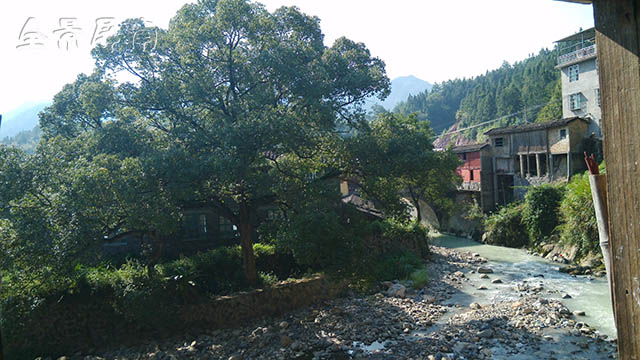 到村子里走一走,更是免不了一番心醉。这里,临溪的位置由于地形狭窄,的确只有一排古木屋,很古的那种。当然了,整个村子实际上要大一些,旁边山脚下还有若干屋子,不新不旧,从远处看,看不见;数百米外的寿山路口,另外又兴建了一个白玉新村,不少人已经迁居到了那边。这些暂且不管。白玉村的美,就只在临溪的这一排古木屋,所有风景都集中在这。不论是远远朝这边眺望,还是就近欣赏沿溪的风光,都只要用一个字形容:美。这里,由于地势陡峭,房前屋后落差很大,一栋栋屋子都选择楼式结构。人从后门进去,要再下几级台阶,才到二楼的厅堂。自然,是楼厅,而不是地厅。初到这样的屋子里,禁不住会产生一种置身悬崖上的错觉。从楼厅的窗口探头出去,一望,底下就是宽阔的溪流,也就是白玉溪。溪从左边缓缓流来,横过屋前,从这里折而向前,因此,这一段溪面特别开阔,也特别秀丽。举目看去,右前方,一个圆圆的桥拱,就像刚从溪面上升起了半个月亮。对岸几棵不知名的大树,枝繁叶茂,但不高,如一把把次第打开的折扇,互相交叠着竖在那里,一副经风经雨的样子。再过去,才是黛色的远山。虽说是深秋时节溪水不多,溪面只见乱石累累,瘦骨崚嶒。但能想象春天里绿波盈盈以及烟雨天薄雾缭绕时,是怎样一幅仙境般的美丽景象。