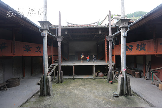 座神牌位,观寿兜肇基始祖温四公端坐正中,下廊有一大天井,立有两对高大石望柱,其中一对石斗上阴刻“光耀月殿,志步云衢”八个大字,为道光年间贡生苏万元所立。驻足仰望,苏氏先人读书出仕光宗耀祖之豪情犹历历在目。 受许国文章、眉山人物等读书出仕家风的影响,苏氏代代子孙中皆有浓厚的书风,历史上通过读书 “光耀月殿”的学子辈出。如乾隆年间开县秀才苏鸿章、道光年间贡生苏万元、咸丰年间恩贡苏万泉等。至光绪元年,小小的寿山村,竟然传出了“一村三监生、三贡生”的美名。村中一块立于光绪年间的“树 林公庙序匾 ”,记录下了这六位学子的芳名。匾的正中间镶嵌有一块铜镜,寓意“秦镜高悬”,学而优则仕,仕则公正廉明造福黎庶。苏氏先祖将匾悬挂于林公殿,可谓用心良苦。 朱子过化存神,满地草木生香。我不敢想象寿山这个藏在山旮旯的小山村的草木亦能生香,但我从长房弄上得溪前厝,驻足凝望朱子手迹“韩潮苏海”的那一刻,似乎闻到了朱子过化后留下的余香。《〈盛世危言〉跋》曰:“观其上下五千年,纵横九万里,直兼乎韩潮苏海,则不啻读《经世文编》焉。”清代杨毓辉将苏氏先人苏轼的文章与“唐宋八大家”之首的韩愈,并称“韩潮苏海”。想当年,朱子为这户苏氏子孙题写“韩潮苏海”,有榜样、有鞭策、有激励,其中更多的应该是期待吧! 四 晚秋,寿山已有明显的寒意,由于人口的外迁,使得原本孤寂的古村大街更显寥落。然而大街两侧的黄土墙、青黛瓦和小木屋却并不寂寞,远处有群狗撕咬的吵闹声,却随着一阵杂乱的爪刨声消失了。很快,一辆拉着谷筐与打谷机的板车从我的眼前轻快而过。哦,原来已是刈稻谷的季节了。 街道两旁老柜台上的木窗板已经卸下来了,窗板很随意地堆放在窗户边,店内空荡荡的,偶尔有两把老椅子,或随意堆放一些无用的杂物。柜台边有青苔快活地往上爬,一些青苔爬进店内步调拉得特别长。一位老奶奶端着一碗饭,在空荡荡的店里绕着一个小孩子跑。店内有两个叠放在一起的破竹茶焙,成了这对老少跑跑抓的障碍物。 我从两个破茶焙中闻到了茶香,寿山曾经是一个小有名气的茶村,清末进入鼎盛时期,全村有八大茶行,所产茶叶多数经传道士销往德、英、法、俄等欧洲诸国。 “据调查,民国五年( 1916 ),寿山村‘协升’‘泰和’‘泰丰’三个茶行收购茶叶 22.5 吨……”《屏南县志·茶业》记录下了这三个茶行该年的茶叶收购量。在寿山,我看到了岭头正丰行、溪头协春泰茶行、溪尾行三座老茶行遗址。从那零落沧桑的遗址上,可以想象由茶事带来的熙熙攘攘人来人往的繁荣景象;大街旁的那两排老店,也该有各种足以吸引八方来客的叫卖声,奏成一曲古老而铿锵的交响乐吧! 手握银两是大爷,吃饱喝足好嗑聊。茶、酒、戏是古代村民主要三大健康休闲娱乐方式。茶酒激活味蕾,戏曲大饱眼福。茶酒不分家,几乎家家户户都饮茶,都喝酒、酿酒。客人来了一碗蛋茶不可少,围炉小饮、嗑聊闲啜、三五交杯也别有风味。晚饭后,信步在寿山村,一种古老的戏剧唱腔勾起我的许多回忆。儿时,村村都在演戏,戏剧陪伴着孩子们健康成长。仔细聆听,这种穿插秦腔、老拨子和杂调的唱腔似乎又有些陌生。据村中的老艺人介绍,这种颇具特色的唱腔为乱弹戏的独有唱腔 ——梆子腔,乱弹戏又称北路戏、尺调戏等,兴于明,盛于清。传统剧目有《碧玉钗》《状元游街》《双合缘》等数十种,清道光年间,农民表演家苏兆岁组班到闽浙赣等省演出名噪一时呢!