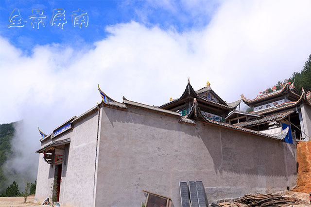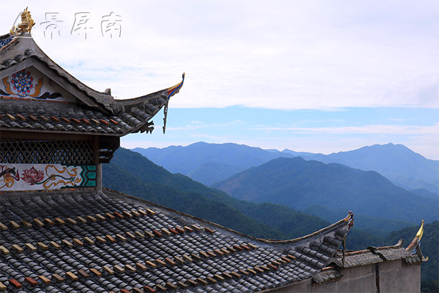 到了一片开阔的道场,声响回荡,阳光下祥云罩着一座庙宇,那就是九仙宫。站在九仙宫前远眺,只见层峦叠翠,袅袅的仙雾在山林间飘移,远处的云海更是绮丽,远山的边缘云霞蒸腾,放出金光,山峦倒影天之青蓝,白云如凤鸟张翅,那是不是神奇的佛光?我是不是身处九天仙境?