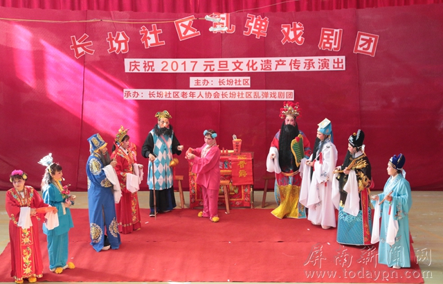 屏南乱弹戏被称为“戏苑怪味果”,有“中国戏曲活化石”之美誉。乱弹兴起于明末清初,是伴随着雅部的衰落而兴起的花部中的一中唱腔。它于清中叶传入屏南,清道光十年,在寿山村以兆岁为班主,聘请闽浙赣三省乱弹名艺人,成立“三省福”乱弹班,在屏南各地演出。清末,屏南乱弹进入鼎盛时期,当时除了乱弹外,还有上山登,康里,苏院等20多个村办过乱弹班社。尤其以寿山乡乱弹戏最为有名,至今传承沿袭二百多年。2007年8月,屏南“乱弹戏”被列入第二批省级非物质文化遗产名录。 据悉,此次演出旨在庆祝元旦之际,传承中华传统戏曲乱弹戏,让更多人了解、认识乱弹戏。此次乱弹戏表演者全部来自长坋社区老年人协会长坋社区乱弹戏剧团。“能够站在戏台上唱乱弹戏,把热爱的戏曲传承下去,很开心。只要观众愿意看我们表演乱弹戏,我们一定会继续表演下去的。”一位乱弹戏表演者说。 |