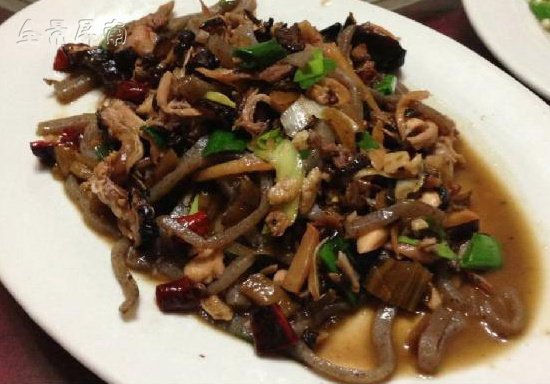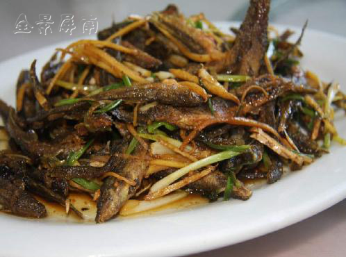 泥鳅干,先把泥鳅烫熟,用牙签把泥肠剔除,锅里放少许油,微火把泥鳅慢慢烤干。煮时加切碎的菜甲(萝卜的地上茎叶用糟盐腌制而成),泥鳅的腥味完全被菜甲去除,煎煮过的泥鳅酥香可口,入嘴即化。菜甲则吸收了泥鳅的鲜美,变得咸鲜适口。