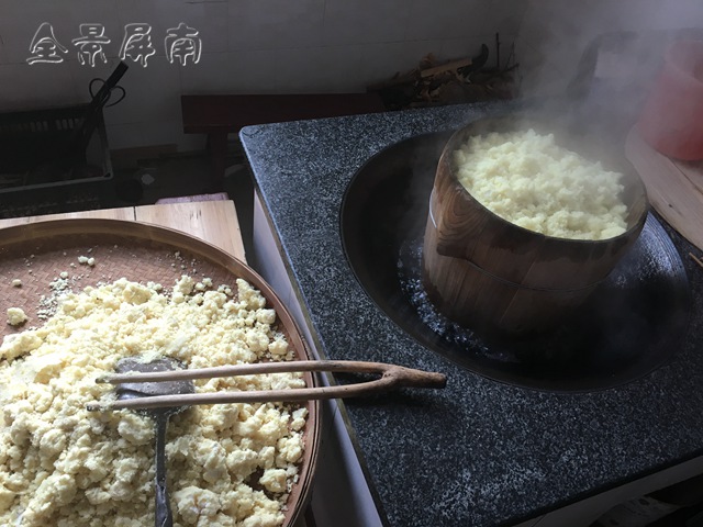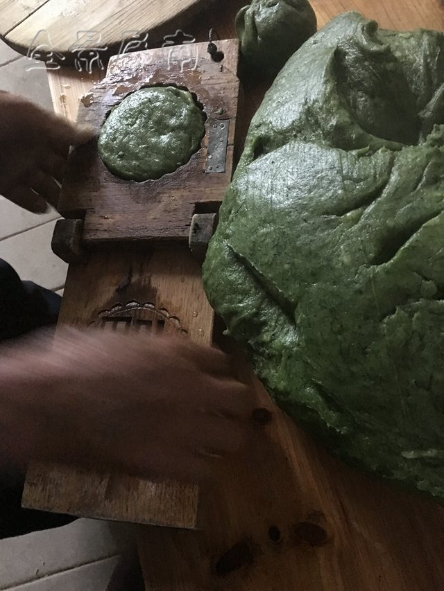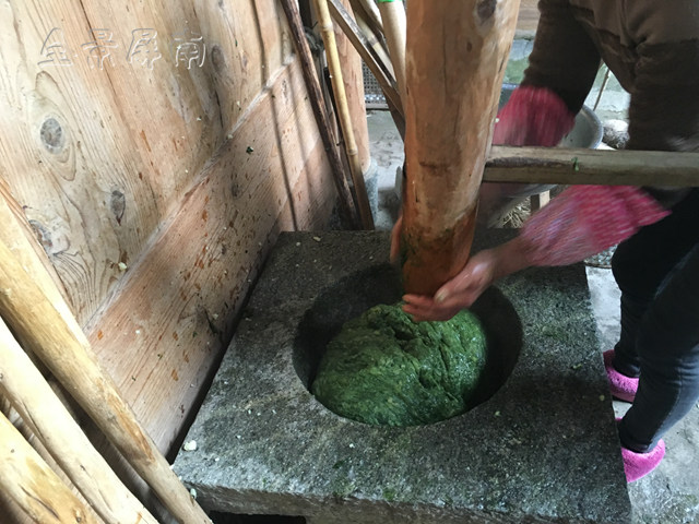 米粿是大部分地区的传统食品,而加入鼠麴草以后,派生的创新品种叫鼠麴粿。它颜色绿,品相好,味道鲜,备受食客青睐。在许多老闽东人的记忆里,鼠麴粿是一道抹不去的美味,如果回到纯手工制作年代,回到山青水绿的田野重温一遍鼠麴粿的加工过程,一定会倍觉齿颊芬芳。 在萧瑟的冬天,到处山寒水瘦,这时节大自然馈赠给人们的野菜并不多。还好,鼠麴草虽不属大器,倒也算晚成,总是适时应景地出现在春节前后。 鼠麴草在冬天里逆时而生,带着大自然清新,这种草,星星点点地分布在山野间,它贴地而长,长得纤小,甚至有点卑微,以至于牛羊们低头找食,它们的大眼睛可能看不见,它们的大嘴巴也可能啃不着,鸡鸭鹅兔们,又可能嫌它的一股粘涩味――也许它们的味觉和人类不一样呢――而正是因了这种清奇的味道和坚韧的劲道,人们将它与白米粿匹配起来,让它们抵死緾绵,亲密咬合,尔后诞生出一种新的美食品种“鼠麴粿”。现在想想,还是觉得,那肥嫩多汁的鼠麴草是专为白米粿而生的,除了它,没有别的更好搭档。 尽管天空细雨霏霏,还夹带着阴冷潮湿的寒气,但是春天踩着欢快的脚步快要到来了。这个时节,大地草木渐苏,鼠麴草也走进它美好的春天,长得青翠茂盛,人们可以大量采摘操作,乡村里勤快的大姑娘小媳妇提着竹篓,三五成群,笑语喧哗地走出户外,蹲到野地里,采摘带着泥土气息的鼠麴草。 鼠麴草那短短的茎杆撑着肉肉的叶片,叶面上披一层白绒绒的纤毛,汲取了冷露清霜之后,透出晶莹的宝石绿,田野上,菜园里,还有,水湄边,坡岸上,乱草丛中,到处可见它们嫩汪汪水灵灵的倩影。小时候,拔草是一件多么快乐的事,荒草野地简直就是我们的乐园,虽然这么多年过去了,乡村还是那个乡村,草地还是那样的草地,这拔草的情境应该还是没有什么变化吧。“天街小雨润如酥,草色遥看近却无。”如果贴近,刻意去观望,眼前根本没有一点绿,可是若是站得远远的,了望那些树木草坪,山川河流,竟然有一些隐隐的绿,带着一袭沉沉的水气,缥缈在天地之间。这是一种多么奇怪的感觉!看到那一抺淡绿色的地毯,闻着浅淡的草香,就把累啊冻啊啥都忘了。而当所有的辛勤劳动,换成餐桌上的美味,是一场多么幸福的回报! 点燃屋外的那口大铁锅:将山茶树啦、野桂花树啦、不知春等等芳香常青的树枝砍下来,堆在大铁锅上,噼里啪啦烧了一阵后,烧成了灰,再淋上水,浸过草木灰的水滤出来,就成了碱水。这碱水,等着发挥神奇的作用。 这边厢,灶膛里的硬柴火烧得旺旺的,主妇将泡得肥硕雪白的粳米装进大饭甑,放进大锅里旺火猛蒸。蒸到热气腾腾,甑沿上的蒸馏水密密麻麻往下滴时,屋子里喷出米饭的香味,蒸熟了,蒸透了,得赶快把粿饭倒入石臼窝里反复舂打。大家都知道,蒸熟的粿饭如果不趁热舂打,冷了以后就会影响米粿的口感。而且,真正的米粿是舂出来的,只有把刚出锅的饭粒不停地舂打,做出来的米粿才会香绵柔韧。 每当冒着热气的饭甑从厨房里端出来时,这家的主妇必定在大门口拉着长腔喊一声:“开始舂粿啰!”伴随着这一声呼叫,邻居们即使手头再忙,也得派一两个人过来一起帮忙。 舂粿饭是项体力活,要像打铁一样将饭粒捶打成粘韧的粿团,打完一石窝的粿饭,就算是常年干农活的汉子,也得打出一身的汗。每当木杵砸向石臼,可以清晰地听到粿饭和木槌黏在一块又被瞬间撕开的声音,米饭黏在木槌上时,主妇得把双手醮满草木灰碱水,尽快伸入石臼里,将米饭从木槌上捋下来,同时快速翻动被舂打的粿饭,充满劳动的节奏与美感。 最动人的是粿饭泡上草木灰碱水之后,起先变得微黄,这时候它是黄米粿,尔后加入沸水淖过的鼠麴草,一阵猛捶细敲,随着一阵热雾滚涌而去,一窝碧绿的鼠麴就如梦初醒似的,呈现在眼前。 接着,一群帮忙的人围成一圈,准备捏粿团。刚打出的粿团烫人又黏手,在手掌中心抹上碱水,再从石臼里捏出一块,捣鼓几下,挤出一团,另一只手拧下来放在竹簸箕里。动作一气呵成,一个个粿团的雏形就做好了。 舂粿之后是印粿。不同地方鼠麴粿各具形态。一般是一块长方形或正方形的硬木板,家乡人称之为粿印,是专门用来印粿的。木雕的粿印图样繁多,有“喜鹊登枝”、“松鹤延年”、“花开富贵”等等,每个粿印就像一枚邮戳,寄寓着新年的祝福……柔绵而雪碧的粿团放在粿板上,均匀地往下、往四周压扁,摊匀,一个个漂亮的粿饼就做成了,一时间春暖花开,蜂飞蝶舞,一派盎然春意也就在粿板上荡漾开来。 山里人家过年舂米粿,元宵等节日也做米粿。除了留给自家吃,更多的是用来送人的,迎来送往间,送走了许多米粿,也收到许多不同的米粿,大家互相品评,讨论哪家的汉子种的水稻品种好,哪家的媳妇手工巧,作品好看。可以说,这种印有各种吉祥图案的米粿,就是山里人最纯朴的贺年卡,主妇们用手纹轻抚重按,有如在书写祝语,彼此的祝福都印在米粿上面,每一份礼物都倾注着农家人的汗水与真情,散发着质朴的芳香,浓浓的乡情与节日气氛就这样弥漫开来。…… 鼠麴粿味道清雅脱俗,口感好,只要用少许菜油清煎,就能最大限度地保留山野的味道。正应了菜根谭里说的:浓肥辛甘非真味,真味只是淡。