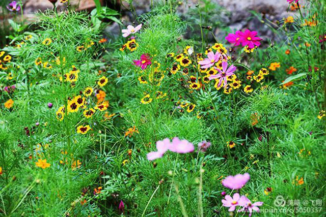而夏季,种在村间路旁的格桑花,生长花开异常茂盛,五彩缤纷,花期又特别长,一直延续到秋天,这里的格桑花与高原上的相比,更加鲜艳无比,光彩夺目!