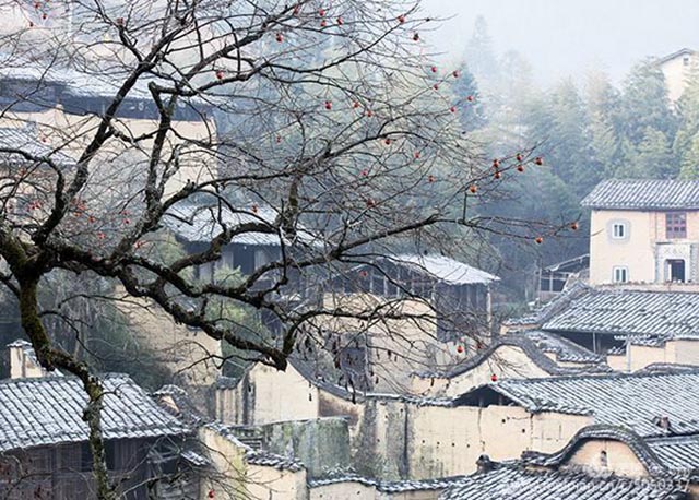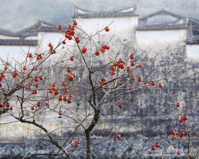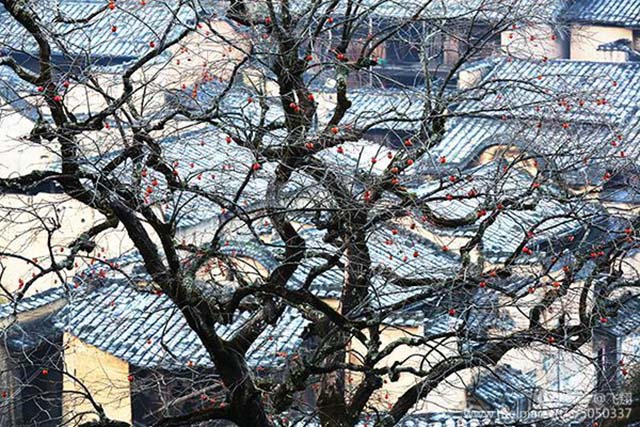 而形成这里独自魅力的是这里的众多老柿树,柿子果熟而成‘’果花‘’。每年晚秋到冬,橙红的柿子缀满柿树,远看好象开满红花,特别是霜天后,柿树叶落了,满树红柿子,再加上古宅古墙相衬,如同古朴的国画,因此也吸引了众多的好摄者,也促成很多绝佳片子! |