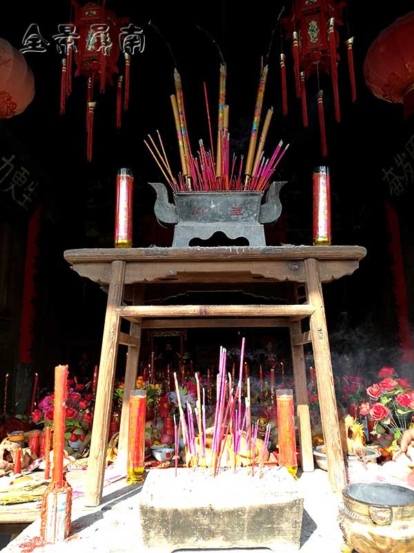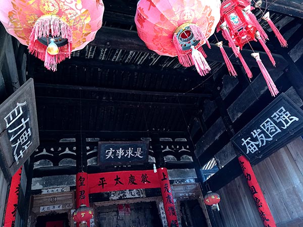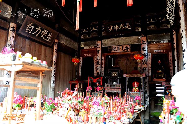 这其中的“一祠”,便是始建于明初的蓝氏祠堂。一个村庄的祠堂,本是一座寄放乡愁的陈列馆,除了供奉祖先的牌位,还供奉着天地人的大道理,是一方独特的“家族印”。而在文革“破四旧”时期,巴地村的这方“家族印”,却无辜地被看成“腐朽与反动”之地,先人留下的一块块勉励耕读传家的牌匾,或被砸烂,或被改弦更张。如今祠堂的墙上,三块分别被刷上“自力更生”“奋发图强”“实事求是”大字的牌匾,依旧赫然醒目地高挂着。它们在受人叩拜的蓝公、陈靖姑、虎马将军诸位神明,以及满桌的供品和余烟缭绕的香火之中,显然不怎么协调,却又那么理所当然地存在着。如果时代的洗礼所留下的印证,也算是特色的话,这倒也成为巴地宗祠的特色之一。