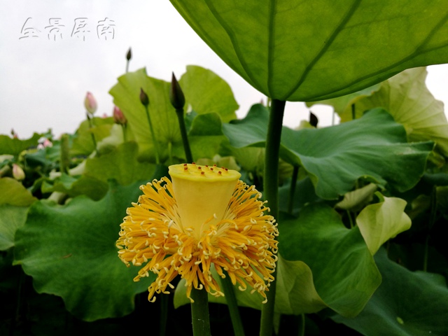 午后三点,太阳躲进云层,云层堆积得越来越厚,天空被压得很低。蜻蜓在低低的云下,低低地飞。一场大雨就要来了,赏花的人们渐渐退去,剩一片空荡的荷塘等雨来。山雨欲来风满楼,整个荷塘都在风中摇曳起来。枝乱了,叶乱了,花朵也在无助地摇摆。刚刚还明亮无比的世界,变得一片灰蒙。雨,终于来了,千条万条雨线落在荷塘上。我躲进竹屋的檐下等雨停,却见花农穿着连帽的雨衣,走向花中的田埂。他是担心这无边的风雨,会将他的荷塘吞没吗?说,盛夏的天气,一怕台风,二怕冰雹,二者对于花或莲蓬,都是致命的。但此时,他又能做什么呢?难道,他要在雨里,一直这样站下去吗?