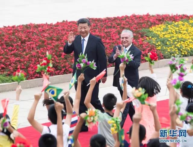 回首过去,因为要感知前进方向。习近平指出:“ 中国和巴西分别是东西半球最大发展中国家,都是重要新兴市场国家。中巴关系是成熟而稳健的发展中大国关系。过去一年,中巴合作稳中有进,贸易、投资、金融‘三驾马车’呈现并驾齐驱的良好局面。两国合作机制运转顺畅,双方就金砖国家合作以及重大全球性热点问题保持卓有成效的沟通和协调。”中国是亚洲最大的发展中国家,全球第二大经济体;巴西是南美洲最大的发展中国家,全球第七大经济体,中巴两国都拥有“劳动力成本低”、“天然资源丰富”、“经济增长快”、“市场潜力大”等新兴市场国家所具备的明显特征。中巴两国从1974年建立外交关系,到1993年建立战略伙伴关系,到2012年提升为全面战略伙伴关系,再到2014年签署《中华人民共和国和巴西联邦共和国关于进一步深化中巴全面战略伙伴关系的联合声明》,两国领导人的每一次密切交流都体现了两国关系愈趋成熟,交往层次的每一次笔墨浓重都表明了两国关系更加稳健,可以说,中巴关系早已超越双边范畴。回首过去一年,中巴合作领域不断深化,据中巴企业家委员会(CEBC)公布的数据显示,2016年中国企业在巴西的投资为83.97亿美元,同比增长了13%,中国的贸易、投资以及金融成功拉动了巴西经济的发展,同时中国也转移了部分过剩产能,促进了经济结构调整,真可谓一举两得。中巴双方政治战略互信,经济优势互补,文化相互交融和借鉴,国际事务中的密切合作与积极协调立场,都极大程度地体现了开放、包容、合作、共赢的金砖精神,也为新时期的其他新兴国家树立了典范。