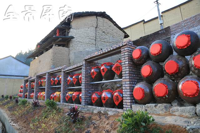 进入村中,沿着村中的弄子走一走,逛一逛,目光所及,屋边、墙角、空地、树下,或平放、或竖立,到处堆着作为装饰物的大酒坛,每一个酒坛都贴着或行或草、或隶或篆,形体不一的大红“酒”字标签。偌大一个村子,到哪个角落,都感觉红光耀眼。那种热烈而夸张的气氛,更是让人禁不住有种不饮自醉的错觉。仿佛不知觉间进入到了古代的水泊梁山,面对那一大帮大碗喝酒大块吃肉的草葬英雄,直想找一个谁来共同说一通醉话。