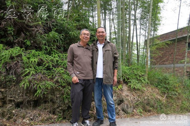 ![]() 受情感的驱使,在娘舅家报到后,就朝古村方向走去,行至村头河边,但见几颗挂有国家二级保护铭牌的钩锥古树,巍然屹立,郁郁苍苍,古树周围是青翠的毛竹和杂木林。透过它们的枝叶,隐约中就能看到古村的样貌了。正准备拍照时,恰巧碰见去城关看望小孩的美信老师和他的爱人,我们便互道问候、合影留念,共祝节日快乐。