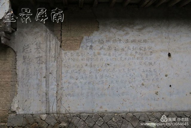 生养我的这老宅,依河而建,分上下两座,藏风藏水,可谓小桥流水人家,墙外“总路线的基本特点”宣传标语,依然清晰可见。