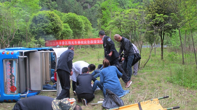 今日屏南消息 4月25日,白水洋景区举行旅游观光车事故应急救援演练,参加演练的单位有:白水洋旅游集团公司、宁德市质量技术监督局、福建省特检院宁德分院、白水洋鸳鸯溪风景名胜区管委会、屏南县市场监督管理局、屏南县安全生产监督管理局。 演练现场,一辆载有8名游客的观光车因驾驶员疲劳驾驶导致车辆侧翻,造成6名游客不同程度受伤。景区管理处接到报警后立即启动事故救援程序,由景区医护人员和保安组成的救援小组在第一时间赶到现场,对伤者进行简单包扎护理后,送往医院进行抢救,同时景区负责人也赶到现场对受惊的游客进行安抚,并组织力量对事故车辆进行施救,最终顺利完成事故救援事项。 此次演练出动各类车辆7台,参演50余人,检验了景区发生突发事件时,各部门快速反应及协同作战力,为事故的控制和救援积累经验,通过应急演练有针对性提高了景区应急救援能力,进一步提升了景区知名度。福建省电视台综合频道、宁德市电视台对演练现场进行了专题报道。 |