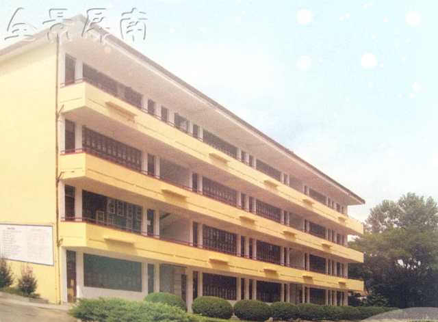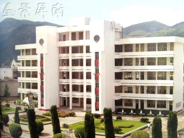 原校园一瞥(由近及远、从左往右,依次为:办公楼,高中部,实验楼,初中部)