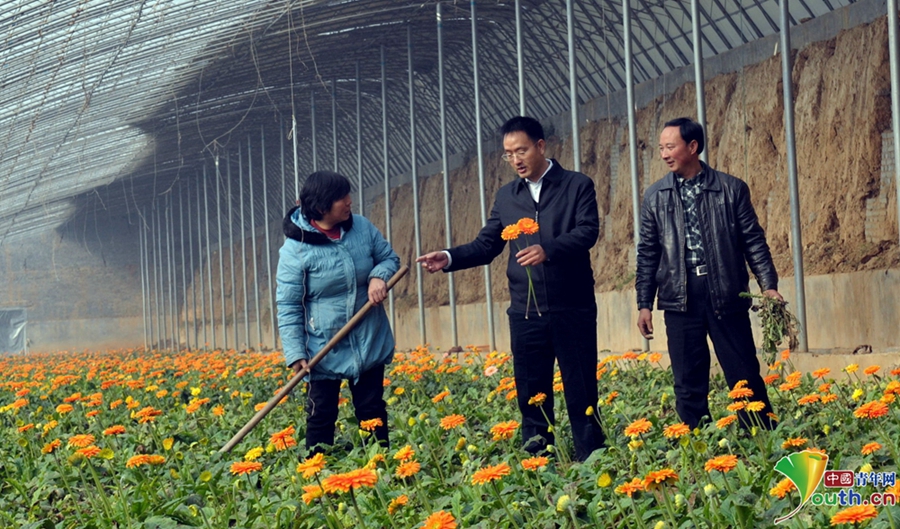 2013年底裴寨拦洪蓄水水库建成蓄水, 彻底解决了村子及周边4万人、 2万亩耕地的缺水难题, 改善了当地的自然生态。 干涸了千百年的山乡, 首次出现了“平湖美景”。 水库建成蓄水,裴寨村首次出现“平湖美景”。本人供图 党的十八大以来, 为让村里经济与生态平衡发展 我和村民一起商讨建设方案。 目前,村里共建温室750余个, 有1250多名村民从事高效农业种植, 每亩土地收益从2万增加到6万多元。 乡村振兴不能等、不能靠,要主动作为! 在我看来,实施乡村振兴战略需要从三个“新”做起: 第一,需要新作为。乡村党员干部率先垂范,不断深化农村集体产权制度改革,优化配置和高效利用农村土地,积极探索新时代振兴乡村的新引擎和新动能。 第二,需要新技术。加大城乡融合发展,构建现代农业产业体系、生产体系、经营体系。要学会使用种植新技术、智能物流交通新技术。通过实施科研院校对接农村、农业,传授更多的农业新技术,打通从实验室到田间地头的“最后一公里”。 第三,需要新人才。乡村振兴战略需要大量的青年农民返乡创业,积极投身到新时代农村建设中来。 裴春亮帮扶鲜花种植户。本人供图 梳理裴寨村“生态经济共发展”的经验,我建议: 鼓励乡村发展旅游业,实现旅游、农业、文化有机结合,推动一、二、三产深度融合的新业态,做到生产、生活、生态同步改善,实现农业增效、农民增收、农村增绿。 紧紧围绕乡村振兴战略,充分发挥好自然生态资源优势,积极探索产业链条长、就业岗位多、辐射带动大且符合农村发展的产业,让绿水青山真正成为村民的金山银山。