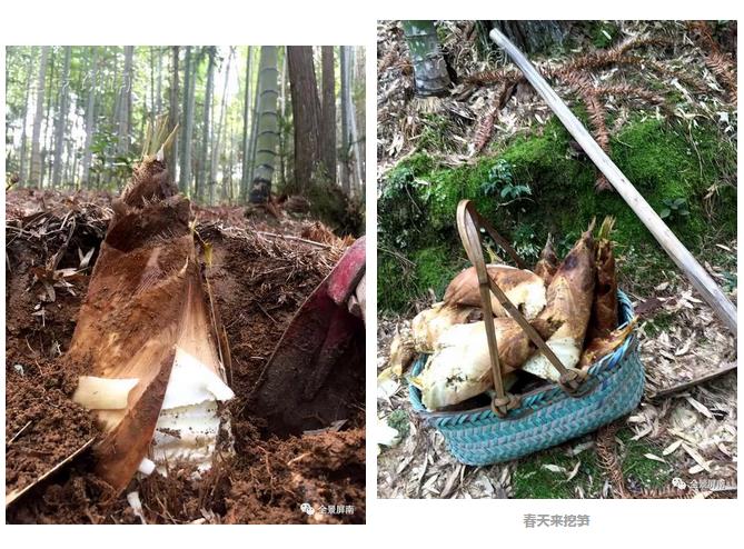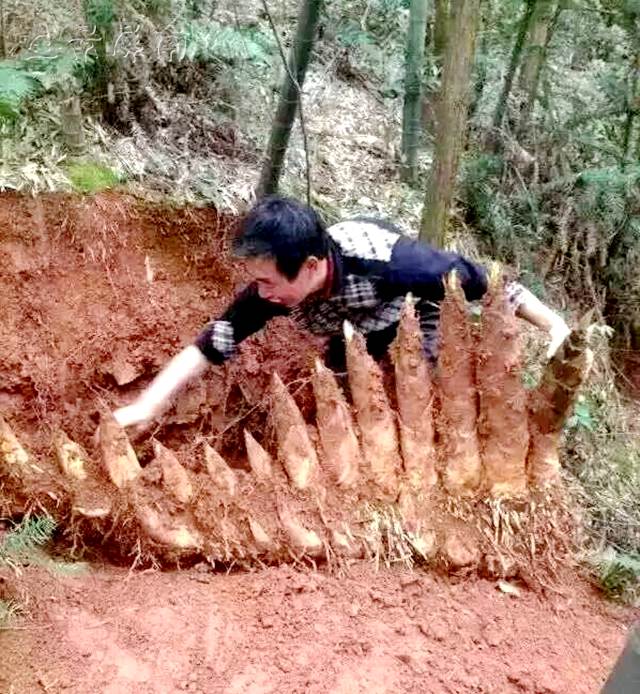 荒林春雨足,新笋迸龙雏。这些雨后的春笋,可不等人,你才刚刚觉得它们是鲜嫩可口的美味,几日后再来,可能就变成比你还高的竹子了,所以,竹笋的采挖有很强的时间性。采挖春笋,你体验过了吗?此时,它们不再躲躲藏藏,你可以随处找到,半天光景,就让你收成满满,相当有成就感了。而且,也偶有大惊喜。你瞧,这位大叔,怎么会挖出这么一大排连在一起的笋呀!真不敢信,这也是笋吗?乍看,还以为他要吹排箫给大家听呢。
