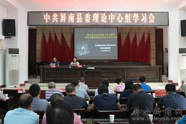 今日屏南消息(甘叶斌)5月22日,屏南县委召开理论中心组学习会,会议邀请福建省委党校、福建省行政学院副教授班玉冰来为我县领导干部作题为“牢牢掌握网络意识形态工作主动权”的专题辅导报告。县委常委、宣传部长张德力主持会议。 会上,班玉冰从全媒体环境下的新舆论格局和树立正确理念把握网络意识形态主动权两个方面,通过一系列精彩案例详细分析网络舆情规律,指导应对措施。整场报告通俗易懂,幽默风趣,内容丰富,对全县做好网络舆情应对处置工作有很强的指导性、针对性和可操作性。 在家县处级领导,各乡镇党委书记、宣传委员,全县副科级以上有关单位负责人及全县网络评论员共计200多人参加学习会。 |
