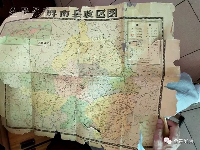 远在千里之外的西安,有一位屏南乡贤,他叫陆享童,1940年生于屏南双溪,1961年从屏南一中毕业,考入北大中文系文学专业。自此,这个从大山里走出来的少年,便远离了故土,去报效更广阔的河山。毕业后一直在陕西广播电台、电视台工作的陆享童,做过记者、编辑,担任过部主任,在新闻工作岗位上耕耘了30多年,获得过全国特等奖、全国新闻百佳等诸多级别颇高的奖项。 屏南政协主席周芬芳(左)与屏南乡贤陆亨童(右)(李锐 摄) 到此,你或许知道了,这个北大毕业的屏南人,曾是广播电视行业里一个春风得意的弄潮儿,却不知他还藏着一个鲜为人知的秘密。它不是绯闻,也无关风月,而是与一件宝贝有关。这个宝贝,不是金银玉器,而是一张破旧的地图,一张长三尺、宽两尺的“屏南县政区图”。五十多年前的一个偶然场合,他从别人那里获得了这张1964年由中华书局出版社内部发行的军用地图,他为此高兴了很久。因为屏南虽小,县内的两百多个村落却星罗棋布地阵列于各处,公开发行的普通地图比例尺小,根本无法查阅小地方。而这张地图上,屏南的山川、溪流、城镇与村落标注得很细,几乎一个不落。所以,远离家乡的他,似乎找到了一点慰藉。从此,这个从山里走出来的屏南人,一边在城市里打拼着理想和远方,一边珍藏着皈依灵魂的故乡。跟随陆老已半个世纪的地图,因为时常被翻阅与折叠,本已泛黄的图纸更加破损不堪。不知被虫豸垂涎过多少次的这张方形之纸,也就这样跟着他从屏南到北京,又从北京到西安,成为身在异乡为异客的陆老半生追忆的媒介。而在他的笔记里,关于这张地图,除了说明它的特点之外,还有这样一句朴实的话:“……但也有例外,阿曼写的《约会石老厝》里的‘石老厝’就未标注,但据她所述,我在郑家山和峭顶之间,其方位大致也能查出。儿时,我有一个亲戚就居此地,故熟悉。” 跟随陆老半个世纪的屏南政区图 也许,从未远离的我们,无法更深刻地体会他那种“此地一为别,孤蓬万里征”的乡关别梦,只能想象他一次又一次在异乡的灯火之下,寻找地图上曾经熟悉的那些古道与村落。是的,在这种寻找中,在不断咀嚼故乡的名字中,时光就那么过去了半个多世纪,曾经的少年,也就这样白了头。