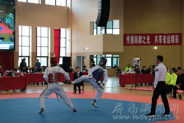 今日屏南消息(甘叶斌)10月20日,为期五天的福建省第十六届运动会(青少部)跆拳道比赛在屏南一中新体育馆正式打响,来自福州、厦门、泉州、漳州、三明、莆田、南平、龙岩、宁德九个代表队的212 名运动健儿们汇聚于此展开对抗,争夺22个级别的奖牌。当天,宁德代表队拔得头筹,夺下一枚金牌。