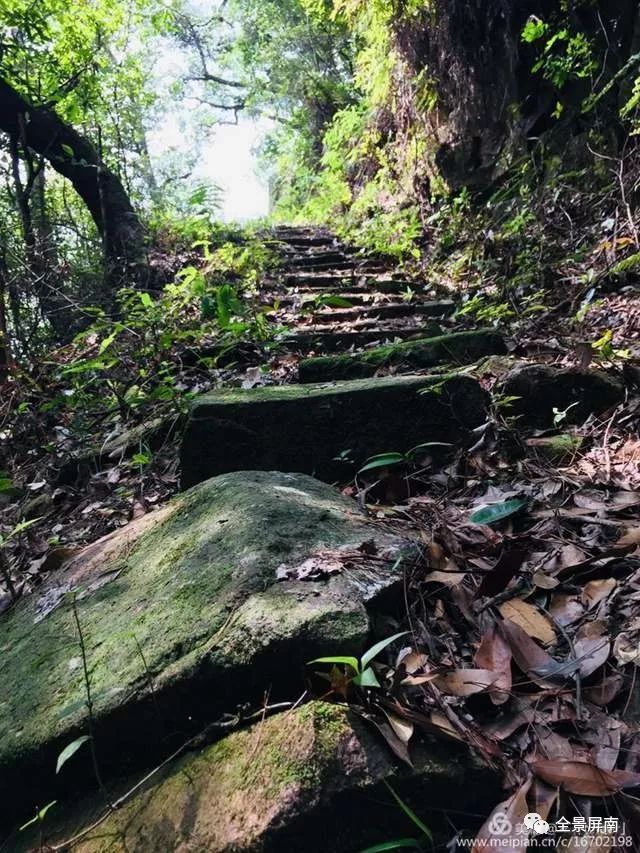 屏南多山,古志载:“屏邑僻处古田之一隅,商贾所不到,又多崇山峻岭,大都皆羊肠鸟道。”为加强与外面的联系,茶盐古道由此而生。屏南的茶盐古道以古田县杉洋为起点向北通往宁德和以屏南县双溪为起点向东通往宁德的两条“茶盐古道”最为重要。 ![]() 而屏南县代溪镇康里村正位于宁德到古田的茶盐古道上,由此康里便成为那个年代古道上重要的歇息驿站,是一颗镶嵌在宁古茶盐古道上的璀璨明珠。现康里境内遗留有茶盐古道6处长度约8公里、路亭2座。还有文淡岔至白玉岔头5公里康里至双溪的古官道。这两条古道总长度13公里,古道大部分地段由石板、石块铺就,在后人不断自发地修护中,古道仍能保持着原始风貌,吸引着周边众多健身爱好者慕名前来。 周末,在当地向导热心的带领下,屏南跑团开启徒步康里转头山,穿越那条被时间尘封的苍桑古道。此次穿越线路:车停康里林场,走转头山古道,经清水亭-打银湾-四角坵亭-前坪亭古戏院-古村遗址(折回),过四角坵亭后选择穿越山间捷径,一路下行到代溪水电站,本想再走白玉经龙井桥,康寿古道至康里,鉴于时间原因,只能放弃,留作悬念。 8点,大伙从县城驱车到达康里林场处,稍作整理,细心的向导给大家鞋面洒上雄黄后,我们踏上了这条充满故事的古道。 三个向导及我们一个跑友都是康里本村人,一路上对古道上的故事一一道来,我们听的也是各种想像。向导一边走,一边指点今天要走的古道,其实都位于这个叫转头山的山里。据说,当年康里村祖婆彭氏出嫁过来时,娘家就将与康里接壤的这边山林作了陪嫁,郑氏礼让不受,但彭家认为,赠出的礼物不能收回,女婿不肯收,那就暂时替他保管好山契,后来等到外孙长大了,彭家外祖又将山契转赠给外孙。这样一赠一拒、转而再赠,在乡间传为美谈,这片陪嫁的山林便被当地人称作为“转头山”。 向导介绍,转头山有三十六岗,七十二湾,一听名字就可想象它的大。那天我们越野18公里,8点从林场出发,下午二点左右才到达代溪水电站,这还只是沿着转头山的半山腰走了小半圈。转头山是真的大! 向导介绍,转头山有三十六岗,七十二湾,一听名字就可想象它的大。宁屏二级路交界处隔河眺望“福建天星山国家森林公园”,基本都属转头山的范围。而那天我们从早上八点出发,一路基本上都在走下坡,停停拍拍,越野18公里,下午二点左右才到达代溪水电站,只是沿着转头山的半山腰走了小半圈。转头山是真的大! ![]() 穿过林场的一段机耕路,便可见一座古朴的长亭,亭身略显破败,但风华依旧,兀自伫立于古道中孤独地守望着。向导说这里有一个青石凿成的石槽,这里的山泉水特别地清甜甘洌,故取名叫清水亭。可惜我们没看到这古朴的水槽。 ![]() 沿亭子而下,是一道完整的古道,山湾里,绿草成茵,身处其间,是无比的放松与自在,一种远离尘嚣与世俗的宁静感油然而生。 向导指着对面裸露山腰间的一个洞口介绍,这就是从前人们开采银矿遗留下的矿洞,因此这个山湾叫 “打银湾”。传说矿洞里面,遗有一口棺材,殓的是一个客死的外地人。由于家人得不到音信,无法来收拾尸骨,只好生死两茫茫。后来这个孤魂托梦给路过此地的一个人,说这洞里有一木槽银子,这人按着梦中所示,来到洞里,打开木槽一看,见是一具骸骨,连说晦气,不再理它了。尔后这事在挑夫队里一传十、十传百,最后传到他的家人耳里,他们循着地名方向而来,终于收葬了骸骨,了却一桩心事。 过了山湾,便是一整片的树林,转头山的森林植被保护的很好, 厚厚的树叶覆盖着森林里的小道,高耸的大树阻档了大部份的阳光,透过的光线忽明忽暗。 行于光影的世界里,如入梦幻,我们贪婪地呼吸着清新的空气,跑友们欢心雀跃一路小跑起来。 ![]() ![]() 林间古道上,突遇一块岩石,岩面平整,宛若镜子,向导指着对面山上一座向外凸起的山头,介绍说,这叫石虎照镜,凸起的山头是老虎的头部。传说,每当太阳和月亮升起至相对应位置时,光线会经石镜投射到对面的虎头上,两山之间一条山涧直流而过,光线、水气相辅相成,石虎、石镜吸天地之灵气,取日月之精华,久而久之,便都有了灵性,每当月光投射至石虎时,石虎便活了起来,出没于古道边,行于周边村落。或是伤人作孽太深,触犯天威,一个惊天霹雳,兀自把石镜劈成了两半,而石虎自从沒了石镜光线的照射,吸不到天地日月的精华,从此再也活不起来,成为石虎。而原先完整的石壁也一分两半,如今在这依然可见一道深深的裂缝贯穿于石壁中。 ![]() ![]() 一路上还有许多浑天而成的自然景观,蝙蝠山,大石壁……向导都一一介绍,看美景、听故事,大伙是越走越轻松。 路上的落叶与林间石板古道互相辉映,那是种沧桑的美,古朴的美,诉说着岁月的流逝,时间的沉淀,脚步的坚实。古道上,不见了挑夫的身影,消散了茶盐的香气。然而,古道上斑驳的石板却深深沉淀着屏宁茶盐古道几百年的历史与文化。 ![]() 密集的树丛,长年落叶的堆积,这里也是野生菌的乐园。村里还流传着一段农谚:“三月枇杷黄,四月杏子熟,五月杨梅红,六月荇(黄荇菇),七月炭(炭菇),八月红菇红彤彤。” ![]() ![]() 向导眼尖,好大的一朵灵芝! 还有一支可爱的小精灵---蜥蜴正抬着头,瞪着眼,看着我们,没有细看,还真难发现这变色龙,伪装的确实好。 继续往下,便可见一亭子,取名四角坵亭,这里是两县交界处,可惜我们没见到曾经的