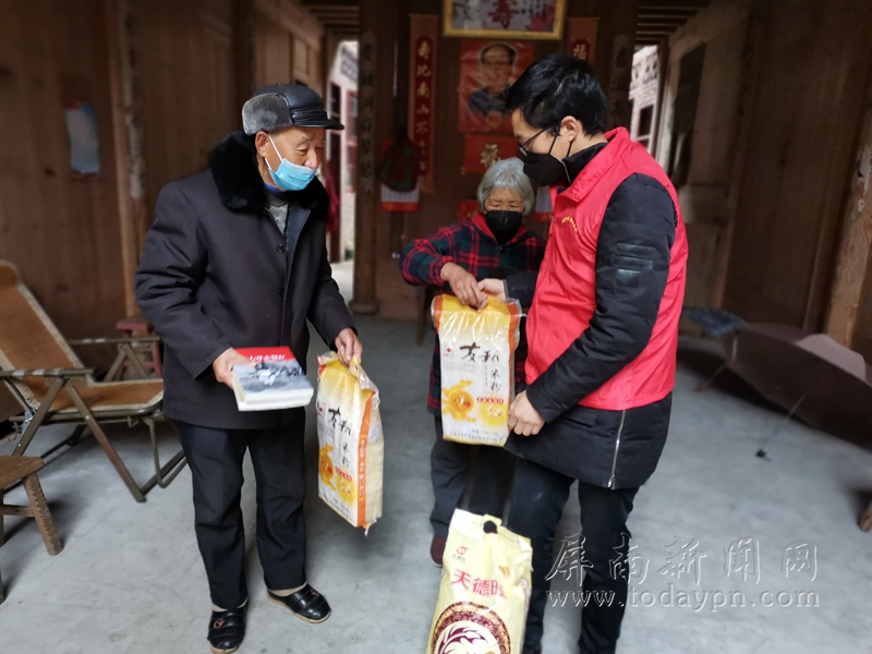 今日屏南消息(张尚瑶)3月11日,屏南县直机关工委干部一行到路下乡芳院村、三万里村和甘棠乡前院村的10户挂钩帮扶的脱贫户家中走“穷亲”,送上大米和粉干,和《摆脱贫困》、《习近平在宁德》等精神食粮,鼓励其坚定脱贫致富信心。