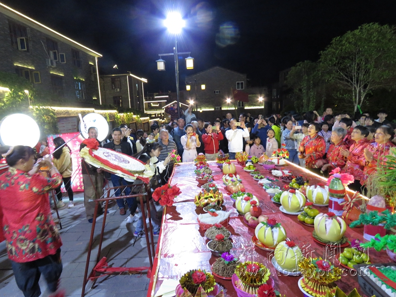 今日屏南消息(甘叶斌)喜迎国庆,月圆中秋。10月1日晚,华灯初上,夜幕降临,屏南县双溪镇双溪社区广场上演着传统中秋拜月习俗。活动现场,皓月当空,人群聚集,声势庄重,场地中央的香案上摆放着供奉月神的月饼、苹果、花生等供品。一群身着唐装的花甲老人们围绕太极图进行诵经祈福、行拜月礼、祈愿鸿福。