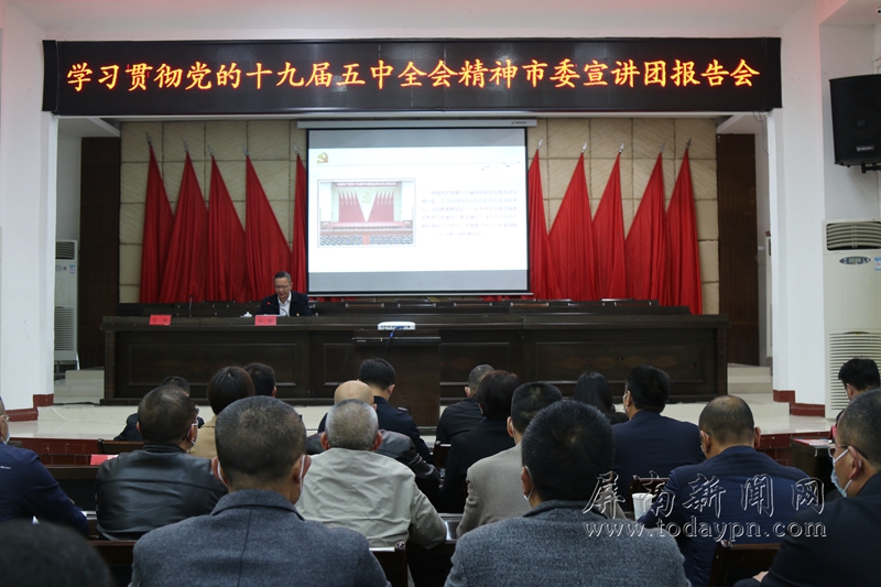 今日屏南消息(陈阿娜)11月24日,市委宣讲团赴屏南县宣讲党的十九届五中全会精神。市委宣讲团成员,市财政局党组书记、局长高一鹏作宣讲报告,县委书记党帅主持报告会,县委副书记、县长柳岳出席报告会。 报告会上,高一鹏围绕党的十九届五中全会精神,紧密结合自身的理论积累和实践思考,从决胜全面建成小康社会取得决定性成就,深刻领会习近平总书记关于谋划“十四五”时期我国改革发展的战略思想,深刻认识我国进入新发展阶段的机遇挑战,准确把握2035年远景目标和“十四五”时期我国发展的指导方针、主要目标、重点任务,牢牢把握构建新发展格局的战略构想和重要着力点,坚持党的全面领导、动员各方面力量为实现“十四五”规划和2035年远景目标而团结奋斗等方面进行系统而深刻的阐述。整场报告会内容深入浅出,案例生动翔实,把理论与实际贯通,台上讲得投入,台下听得认真。 “宣讲既结合实际,又‘干货’满满,让我们把全会精神吃得更透”“这是一次深入的理论辅导,也是一次有力的思想动员”“听完很受教育,以后我们该怎么干就更明确了”……听完宣讲报告会,广大党员干部纷纷表达自己的感受。 县工信局局长陈绍挺表示,要乘着学习宣传贯彻五中全会精神的强劲东风,用实际行动践行初心使命,进一步明确新发展阶段的工作新任务,以更加奋发有为的精神状态,守正创新、开拓进取,为推动屏南高质量发展作出新的更大贡献。 报告会后,市宣讲团成员还深入屏南县城北社区,与基层群众面对面进行互动交流。 |