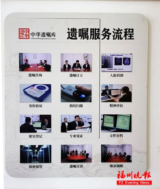记者前几天走进了 位于双子星大厦30层的 中华遗嘱库福州公益预约服务中心 工作人员正在为一位老人做精神评估 该中心当天一共为3位老人 办理遗嘱登记 今年已经有三批人到该中心 预约遗嘱登记,共有13人