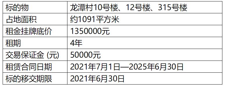 为促进文化创意产业发展,我公司拟将龙潭村10号、12号、315号等三栋楼对外公开招租。特公告如下: 一、租赁内容: 注:该公告中金额数字均以人民币:元为单位;对上述标的物进行竞价,层高、结构、设施设备及毛坯房状况等均以现状为准(竞价投标人或[合同承租当事人]只要参加投标活动,即视为对标的物现状、质量及有能力修改达到消防安全标准或依法取得相应的许可资质及经营有关的合法营业执照及管理)。同时,对承租合同内容已经全部审核对承租方的权利和义务没有异议。 2、保证金支付方式:意向竞价人应在公开竞价截止日期前一次性缴齐交易保证金,中标方在中标公示后交易保证金转为设备押金,未中标单位的将在确定中标单位后的十五日内退还交易保证金。中标人在中标后三日内应当签订租赁合同。如中标人在中标后三日内不签订租赁合同,其中标保证金由福建先飞投资有限公司没收并归该公司所有。 3、主要经营范围或用途:培训、文旅、文创等符合中华人民共和国法律法规许可经营的行业和范围。但不得从事违法行业活动,也不得经营严重污染环境卫生的行业(包括噪音或噪声扰民、排气污染以及加工生产企业活动等)。 4、交易保证金缴纳账户: 开户名称:福建先飞投资有限公司 开户银行:屏南县农村信用合作联社熙岭信用社 开户帐号:9060714010010000008581 以银行存款方式缴纳交易保证金,交易保证金汇款人全称必须与竞价人全称一致,否则竞价无效;且汇款用途须注明“交易保证金”。 二、竞价方要求及条件: 1、具有完全民事行为能力的自然人或合法登记的企业法人、行政事业单位及社会团体;具有良好的财务状况、支付能力;无违法犯罪、无意识形态领域问题,具有良好的商业信用; 2、不接受联合体形式报名; 3、租赁经营期间所产生的水电费、卫生清理费等因使用房屋所产生的各项费用由承租方承担;