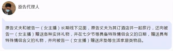 并且,甄女士还在丈夫和这名女主播的微信聊天记录中发现,双方不仅经常互道晚安,甚至还会对彼此说出“我爱你”这样的话,明显有悖于一般男女正常交往的关系。