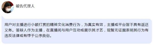 平台方的代理人则表示,在2018年11月到2020年6月间,杨先生还打赏过其他10名女主播。他们也认为,杨先生的充值打赏行为,是消费行为,而不是赠与行为。因此,也没有退还的义务。