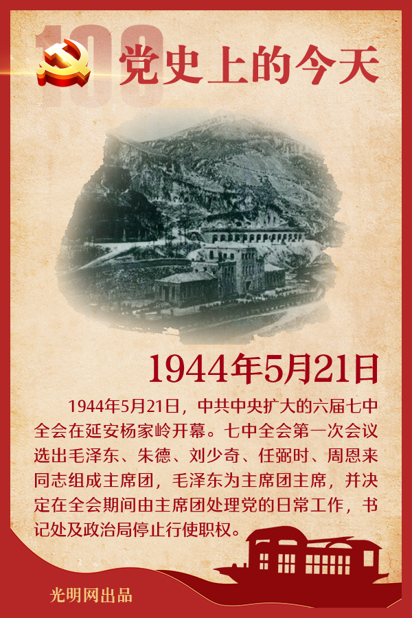 重要论述 1944年5月21日 中共中央在延安举行扩大的六届七中全会。毛泽东在会上提出七中全会的两项任务(准备七大和在全会期间处理中央的日常工作),并代表中央政治局向全会作工作报告,讲抗日准备时期和抗战时期的主要问题。报告指出:这两个时期我们的目的就是为驱逐日本帝国主义出中国而奋斗。为达到这个目的,我们的方针就是发展自己,团结友军。这个方针最初决定于一九三五年十二月瓦窑堡会议,直到现在都是为执行这个方针而斗争的。报告还谈到七大以后准备夺取城市的问题,指出:我们要有精神上的准备,学会做经济工作,学会做城市工作。谈到近期的国共谈判问题时指出:前途不外两个:一仍是拖;一是解决部分问题,如军队问题、边区问题、防地问题、在个别地点办党办报问题。他们如决心解决这四个问题,我们应准备接受,向全国表示我们愿意搞好国共关系。会议通过由毛泽东、朱德、刘少奇、任弼时、周恩来组成七中全会主席团,毛泽东为中共中央委员会主席及七中全会主席团主席。会议决定,在全会期间由主席团处理日常工作,中央书记处及政治局停止行使职权。会议同意毛泽东代表中央政治局向全会提出的关于党内历史问题的六点意见,并形成决议。会议通过七大的议程及报告负责人:毛泽东作政治报告,刘少奇作组织及修改党章报告,朱德作军事报告,任弼时作党的历史问题报告,周恩来作统一战线报告及公开讲演。扩大的六届七中全会从本日开始,到一九四五年四月二十日结束。毛泽东的工作报告收入《毛泽东文集》第三卷。 1952年5月21日—6月5日 中财委召开全国财政会议,主要讨论一九五二年财政概算、三反五反运动中的市场问题和第一个五年计划问题。会议指出,我们的财政收支方针是“边打、边稳、边建”,由于朝鲜战场形势的变化,财政工作要放在和谈有可能拖延并能继续应付战争的基点上,编制今年概算要以建设第一,军事第二,行政第三。此后,“边打、边稳、边建”的财经工作方针,同“三年准备、十年计划经济建设”的战略设想有机衔接起来,从中央到省市县各级有步骤地建立起完整统一的财政体制。 1984年5月21日 邓小平在会见美籍华人教授李政道和夫人时,谈到正负电子对撞机工程的建设指出:要解决具体问题,不要拖,拖是最大的官僚主义,财政拨款找万里。他对李政道提出的关于在国内培养博士后和建立博士后流动站的建议,表示赞成,指出:博士后,对我来说是新事物、新名词,我第一次听到。成千上万的人回来是很大的问题,我们现在对回来的人不晓得怎样使用。设立博士后流动站,是一个新的方法,这个方法很好。培养和使用相结合,在使用中培养,在培养和使用中发现更高级的人才。十个博士后流动站太少,要建立成百成千的流动站,要成为制度。主要是先定点,定了点后拨款,盖房子,买些必要的设备。看准了要行动。以后各行都可以参照这个办法,是使用培养,也是考核。 2014年5月21日 亚洲相互协作与信任措施会议第四次峰会在上海举行。习近平主持会议并发表讲话。他指出,亚洲和平发展同人类前途命运息息相关。亚洲稳定是世界和平之幸,亚洲振兴是世界发展之福。和平、发展、合作、共赢始终是亚洲地区形势主流。亚洲良好局面来之不易,值得倍加珍惜。亚洲地区安全合作进程正处在承前启后的关键阶段。我们应该积极倡导共同、综合、合作、可持续的亚洲安全观,创新安全理念。他强调,中国坚定不移走和平发展道路,始终是维护地区和世界和平、促进共同发展的坚定力量。中国和平发展始于亚洲、依托亚洲、造福亚洲。中国坚持与邻为善、以邻为伴,坚持睦邻、安邻、富邻,践行亲、诚、惠、容理念,努力使自身发展更好惠及亚洲国家。 2019年5月21日 习近平在视察陆军步兵学院时强调,办什么样的院校、培养什么样的人才,是办学育人首先要解决的问题。他指出,学校是立德树人的地方,必须坚持坚定正确政治方向。要坚持用新时代中国特色社会主义思想和新时代党的强军思想武装头脑,深入贯彻古田全军政治工作会议、军委党的建设会议精神,全面加强党的领导和党的建设工作,把政治建军要求落实到办学治校各方面和全过程。军队院校因打仗而生、为打仗而建,必须围绕实战搞教学、着眼打赢育人才。要立起为战育人鲜明导向,一切办学活动都要聚焦能打仗、打胜仗。要把握现代战争特点规律,把握陆军转型建设要求,做到打仗需要什么就教什么、部队需要什么就练什么,使人才培养供给侧同未来战场需求侧精准对接。要加强顶层设计和长远谋划,拿出科学的目标图、路线图、施工图,一张蓝图抓到底。 2019年5月21日 习近平在南昌主持召开推动中部地区崛起工作座谈会。他指出,推动中部地区崛起是党中央作出的重要决策。做好中部地区崛起工作,对实现全面建成小康社会奋斗目标、开启我国社会主义现代化建设新征程具有十分重要的意义。他就做好中部地区崛起工作提出8点意见。一是推动制造业高质量发展,主动融入新一轮科技和产业革命,加快数字化、网络化、智能化技术在各领域的应用,推动制造业发展质量变革、效率变革、动力变革。二是提高关键领域自主创新能力,创新支持政策,推动科技成果转化和产业化,加快研发具有自主知识产权的核心技术,更多鼓励原创技术创新,加强知识