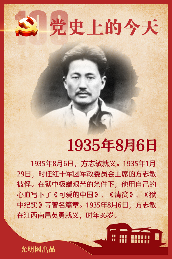 重要论述 1946年8月6日 毛泽东会见美国记者安娜·路易斯·斯特朗,提出“一切反动派都是纸老虎”的著名论断。谈话指出:决定战争胜败的是人民,而不是一两件新式武器。一切反动派都是纸老虎。看起来,反动派的样子是可怕的,但是实际上并没有什么了不起的力量。从长远的观点看问题,真正强大的力量不是属于反动派,而是属于人民。蒋介石和他的支持者美国反动派也都是纸老虎。拿中国的情形来说,我们所依靠的不过是小米加步枪,但是历史最后将证明,这小米加步枪比蒋介石的飞机加坦克还要强些。这原因就在于反动派代表反动,而我们代表进步。谈到美国是否可能举行反苏战争的问题时,指出:美国和苏联中间隔着极其辽阔的地带,这里有欧、亚、非三洲的许多资本主义国家和殖民地、半殖民地国家。美国反动派在没有压服这些国家之前,是谈不到进攻苏联的。 这篇谈话所阐明的在战略上必须藐视敌人,敢于斗争,敢于胜利的重要思想,及其对于国际国内形势、对于反动派的本质、中国革命的前途所作的科学分析,从理论上武装了中国共产党人和中国人民,使他们极大地增强了同帝国主义支持的国民党反动派作斗争的勇气和信心。这篇谈话收入《毛泽东选集》第四卷。 1953年8月6日 陈云出席全国财经会议领导小组会议,就今后财经工作发表讲话。讲话指出:降低物价要采取谨慎态度。因为:(一)降价容易,降了再提,就会有人提意见。(二)在我国有私商存在的前提下,简单地降低物价,并不能达到有利于人民的目的。(三)降低物价,利润会下降,影响军费开支。关于缩小工农业产品剪刀差,这是我们的目标,共产党政权必须这样做,革命就是为了改善最大多数人民的生活。但是,由于我们工业品少,还要积累资金,扩大再生产,这并不是很快可以做到的。在国家财力的使用上,地方财政有困难,过不去的,要照顾,但财力只能集中使用于建设的主要方面,放在能使我国经济起重大变化的方面,这是总的趋势。党要管预算,国家预算应集中在中央,地方预算应由省、市委主持。恢复与壮大国营商业阵地是应该的,但不要盲目排挤私商。现在有些该占领的阵地没有占领,有点右倾毛病,但要注意,不要来一个“左比右好”,犯“左”倾的毛病。这篇讲话节编收入《陈云文选》第二卷。 1977年8月6日 邓小平在科学和教育工作座谈会上,根据与会者的建议,决定从当年起恢复高等学校招生考试制度。他在谈到科技工作的后勤保障时说:我现在仍主张搞“三套马车”:一个是配备党委书记,多半是外行,但对科学教育事业要热心,当然找到内行更好;一个是管业务的,这应当是内行;再一个是管后勤的,即后勤部长。我愿意给你们当总后勤部长。科学院党委在一定意义上讲要成为一个后勤部,教育部也要兼后勤部。条件没有,资料没有,又不努力创造条件,科研怎么能搞上去?搞好生活管理也很重要。在谈到有些人、有些单位搞技术封锁时说:相互封锁,是资产阶级世界观的主要表现之一。借口保密,搞技术封锁,结果是封锁了自己。这种学风一定要改变!这个问题不光在知识分子中存在,在其他行业之间也存在。在与会者建议尽快改变用推荐的办法招生时指出:既然今年还有时间,那就坚决改嘛!把原来写的招生报告收回来,根据大家的意见重写。招生涉及下乡的几百万青年。要拿出一个办法来,既可以把优秀人才选拔上来,又不要引起波动。重点学校要统一招生。今年下决心按要求招生,招的学生要符合要求。还指出:重点学校应以搞基础理论教学为主,培养学得比较深、水平比较高的科研人才。一般大学招的学生水平可能低一些,教学内容应有所不同,出的人才普通一些,但也可能出些尖子。教育部要抓好重点学校,其他的放手让地方上抓。重点学校太少了,要再增加一些,好多专业院校也应当列为重点学校。现在办得不算好的学校要加强,搞几条腿走路。重点学校不要提半工半读。 1982年8月6日 邓小平会见澳大利亚总理弗雷泽时谈到中国对外开放政策指出:我们要不断地利用自己的力量,也要利用国际力量。我们建国以后长期处于孤立的地位,几乎是关起门来搞建设。现在情况不同了,国际条件不同了,我们可以在更大范围内同发达国家建立联系。但是不管怎样,中国这么一个大国搞四个现代化,基本点还是立足于自力更生。与过去不同的是,我们要充分利用国际条件,实行开放政策,吸收发达国家的技术、资金,同许多国家在许多方面进行合作,其中包括改造我们现有的企业。 党史回眸 1935年 8月6日 方志敏就义。1935年1月29日,时任红十军团军政委员会主席的方志敏,在率红十军团北上抗日途中被俘。在狱中,面对敌人的百般诱降和严刑逼供,他正气凛然,坚贞不屈,断然表示:宁为玉碎,不为瓦全,为革命而死,虽死犹荣!在极端艰苦的条件下,他用自己的心血写下了《可爱的中国》、《清贫》、《狱中纪实》等著名篇章,给后人留下了宝贵的精神财富。1935年8月6日,方志敏在江西南昌英勇就义,时年36岁。 1946年 8月6日 毛泽东同美国记者安娜·路易斯·斯特朗谈话时提出“一切反动派都是纸老虎”的著名论断。毛泽东说,反动派总有一天要失败,我们总有一天要胜利。这原因不是别的,就在于反动派代表反动,而我们代表进步。 2006年 8月6日 国务院作出《关于加强节能工作的决定》。《决定》明确了做好“十一五