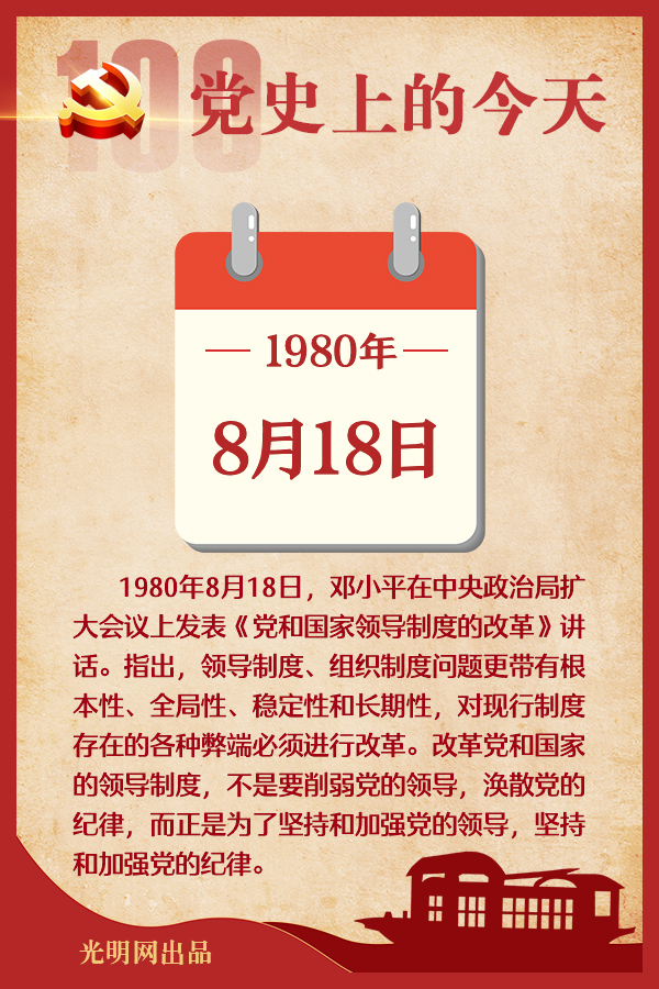 重要论述 1927年8月18日 毛泽东在长沙市郊出席中共湖南省委会议。在讨论秋收暴动问题时指出:湖南秋收暴动的发展,是解决农民的土地问题,这是谁都不能否认的。但要来制造这个暴动,单靠农民的力量是不行的,必须有一个军事的帮助,否则终归于失败。暴动的发展是要夺取政权,要夺取政权,没有兵力的拥卫去夺取,这是自欺的话。我们党从前的错误,就是忽略了军事,现在应以百分之六十的精力注意军事运动,实行在枪杆上夺取政权,建设政权。他在讨论中还提出要制定一个土地政纲,必须没收整个地主阶级的土地分配给农民。这些思想,实际上是对他在八七会议上发言的丰富和补充。 1944年8月18日 周恩来为中共中央起草关于外交工作的指示。指示阐明了党的外交工作的性质、内容和原则立场,指出:这次外国记者、美军人员来我边区及敌后根据地,不应看作是普通行动,而应看作是我们在国际间统一战线的开展,是我们外交工作的开始。我们的外交政策是在国际统一战线的思想指导下,以共同抗日与争取民主、扩大我们的影响为中心内容。指示强调:我们办外交必须站稳民族立场,反对百年来在民族问题上存在的排外和惧外、媚外的错误观念。一方面,要增强民族自尊心、自信心;另一方面,要学习人家的长处,善于与人合作。 2014年8月18日 习近平主持召开中央财经领导小组第七次会议,研究实施创新驱动发展战略。他在会议上发表讲话强调,创新始终是推动一个国家、一个民族向前发展的重要力量。我国是一个发展中大国,正在大力推进经济发展方式转变和经济结构调整,必须把创新驱动发展战略实施好。实施创新驱动发展战略,就是要推动以科技创新为核心的全面创新,坚持需求导向和产业化方向,坚持企业在创新中的主体地位,发挥市场在资源配置中的决定性作用和社会主义制度优势,增强科技进步对经济增长的贡献度,形成新的增长动力源泉,推动经济持续健康发展。 他强调,我们必须认识到,从发展上看,主导国家发展命运的决定性因素是社会生产力发展和劳动生产率提高,只有不断推进科技创新,不断解放和发展社会生产力,不断提高劳动生产率,才能实现经济社会持续健康发展。 他阐述了实施创新驱动发展战略的基本要求,提出4点意见。一是紧扣发展,牢牢把握正确方向。要跟踪全球科技发展方向,努力赶超,力争缩小关键领域差距,形成比较优势。要坚持问题导向,从国情出发确定跟进和突破策略,按照主动跟进、精心选择、有所为有所不为的方针,明确我国科技创新主攻方向和突破口。对看准的方向,要超前规划布局,加大投入力度,着力攻克一批关键核心技术,加速赶超甚至引领步伐。二是强化激励,大力集聚创新人才。创新驱动实质上是人才驱动。为了加快形成一支规模宏大、富有创新精神、敢于承担风险的创新型人才队伍,要重点在用好、吸引、培养上下功夫。要用好科学家、科技人员、企业家,激发他们的创新激情。要学会招商引资、招人聚才并举,择天下英才而用之,广泛吸引各类创新人才特别是最缺的人才。三是深化改革,建立健全体制机制。要面向世界科技前沿、面向国家重大需求、面向国民经济主战场,精心设计和大力推进改革,让机构、人才、装置、资金、项目都充分活跃起来,形成推进科技创新发展的强大合力。要围绕使企业成为创新主体、加快推进产学研深度融合来谋划和推进。要按照遵循规律、强化激励、合理分工、分类改革要求,继续深化科研院所改革。要以转变职能为目标,推进政府科技管理体制改革。四是扩大开放,全方位加强国际合作。要坚持“引进来”和“走出去”相结合,积极融入全球创新网络,全面提高我国科技创新的国际合作水平。 党史回眸 1944年 8月18日 中共中央发出关于外交工作的指示,阐明党的外交工作的性质、内容和原则立场。指出:我们的外交政策是在国际统一战线的思想指导之下,其中心内容是共同抗日与争取民主,扩大我们的影响。我们办外交首先必须站稳民族立场,反对百年来在民族问题上存在的排外和惧外媚外两种错误观念。一方面,要加强民族自尊心自信心;另一方面,要学习人家的长处,善于与人合作。 1980年 8月18日 邓小平在中央政治局扩大会议上发表《党和国家领导制度的改革》讲话。指出,领导制度、组织制度问题更带有根本性、全局性、稳定性和长期性,对现行制度存在的各种弊端必须进行改革。改革党和国家的领导制度,不是要削弱党的领导,涣散党的纪律,而正是为了坚持和加强党的领导,坚持和加强党的纪律。 资料来源:中共中央党史和文献研究院网站 |