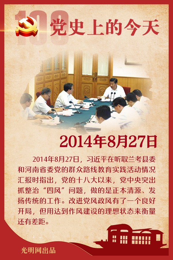重要论述 1941年8月27日 中共中央政治局召开会议,讨论中央书记处工作及党内教育方针等问题。会议决定,在“七大”召开以前,中央书记处的组织不变,但为增强中央工作效能起见,由在延安的政治局委员毛泽东、任弼时、王稼祥、陈绍禹、张闻天、陈云、何克全七人组成中央书记处工作会议,暂定每周开会两次。关于党内教育方针问题,毛泽东发言分析党内干部存在的主要问题,是不能把理论运用到中国革命实际上去,提出要培养行动的理论家。他指出:延安的学校是一种概论学校,缺乏实际政策的教育。过去我们只教理论,没有教会如何运用理论,就像只教斧头本身,而没有教会如何使用斧头去做桌子。延安研究哲学是空洞的研究,不研究中国革命的内容与形式,不研究中国革命的本质与现象。首先应当承认我们党缺乏关于中国革命实际的理论,才能真正实行中央关于调查研究的决定。我们要培养行动的理论家。改造学习要采用革命的精神,对干部教育、学校教育、国民教育都要有一个大的改造。会议同意毛泽东的意见,决定彻底打破目前党内教学方法与思想方法上的主观主义与形式主义,由张闻天等组成委员会,研究改造学习的办法,并起草有关的决定。 1949年8月27日 毛泽东在新政治协商会议筹备会第四次常务委员会讨论修改《中央人民政府组织法(草案)》时,就中央集权与地方分权问题发言。他指出:对于必须集中的尽量集中,必须抓紧的要抓紧。有人说我们只管政策不管事务。事务是管不胜管,而政策问题关乎几十万、几百万人民的政治经济生活。我们是抓紧大的人事、大的政策。我们要有些集中有些不集中才能搞好,所以有些地方要给地方以监督之权。 1981年8月27日 邓小平在会见加拿大外交部部长麦圭根,谈到我国对外开放政策时指出:中国坚持社会主义制度。吸引外资、合资经营包含资本主义成分,但我们并不担心这方面的问题,它不会影响我们社会主义的基础。至于管理方法、科学技术,则没有社会主义和资本主义之分。资本主义在管理方面好的东西,社会主义也可以用。 2014年8月27日 习近平在听取兰考县委和河南省委党的群众路线教育实践活动情况汇报时指出,党的十八大以来,党中央突出抓整治“四风”问题,做的是正本清源、发扬传统的工作。改进党风政风有了一个良好开局,但用达到作风建设的理想状态来衡量还有差距。做好党的群众路线教育实践活动这段时间工作很关键,一定要敬终如始、一鼓作气、善作善成,确保活动取得实效。教育实践活动有期限,加强作风建设无尽期。解决作风方面存在的问题,根本要靠坚持不懈抓常、抓细、抓长。 他指出,全党用了一年多时间开展教育实践活动,最终取得什么样的成效?向群众交出一份什么样的答卷?要切实做到防止前紧后松、防止矛盾积压、防止简单粗糙、防止短期效应。要着力抓好整改落实,向群众公布了整改清单、作出了整改承诺,说出一条就要做到一条,抓整改要动真碰硬,严明责任、加强监督。要着力抓好制度建设,聚焦改作风转作风的重点难点问题,确保出台一个就执行落实好一个,对违反制度规定踩“红线”、“闯雷区”的要零容忍,发现一起就坚决查处一起。要着力搞好活动总结,把成功做法经验化、零星探索系统化。 他强调,全党开展教育实践活动总体形势是好的,广大党员、干部认识正确、态度认真、行动坚决,在解决“四风”问题上取得了扎扎实实的成效。同时,我们头脑要清醒,不能因为取得了成绩就沾沾自喜,看不到或看不够存在的问题。要坚持不懈开展作风教育,始终绷紧作风建设这根弦,做得好的,要不骄不躁,继续做下去。做得不到位的,要不怕阵痛,痛改前非,而且不要再复发。对那些心存侥幸、企望一阵风的,要加强思想教育引导,让他们丢掉幻想、自觉回头,不要在错误的想法、错误的做法上越滑越远。要坚持不懈严格党内政治生活,坚决反对党内政治生活庸俗化,增强党内政治生活的政治性、原则性、战斗性,不断提高党内政治生活质量和水平。要坚持不懈强化宗旨意识,解决好党员、干部是人民公仆的角色定位问题,党员、干部只有为人民服务的责任和义务,必须严格要求自己,各级党组织要加强教育引导、加强监督检查、加强纪律约束。 2017年8月27日 习近平在会见全国体育先进单位和先进个人代表等时强调,体育承载着国家强盛、民族振兴的梦想。体育强则中国强,国运兴则体育兴。要把发展体育工作摆上重要日程,精心谋划,狠抓落实,不断开创我国体育事业发展新局面,加快把我国建设成为体育强国。他指出,加快建设体育强国,就要把握体育强国梦与中国梦息息相关的定位,把体育事业融入实现“两个一百年”奋斗目标大格局中去谋划,深化体育改革,更新体育理念,推动群众体育、竞技体育、体育产业协调发展。他强调,加快建设体育强国,就要坚持以人民为中心的思想,把人民作为发展体育事业的主体,把满足人民健身需求、促进人的全面发展作为体育工作的出发点和落脚点,落实全民健身国家战略,不断提高人民健康水平。把群众性体育纳入全运会,组织人民群众广泛参与,就更好起到了举办全运会的作用。他指出,加快建设体育强国,就要弘扬中华体育精神,弘扬体育道德风尚,坚定自信,奋力拼搏,提高竞技体育综合实力,更好发挥举国体制作用,把竞技体育搞